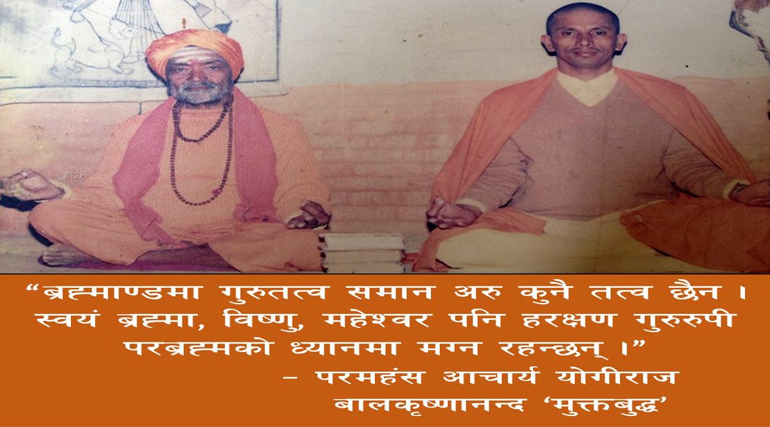 वि.सं. २०१० फागुन २३ मा जन्म लिनु भएको सद्गुरुदेव परमहंस आचार्य योगिराज बालकृष्णानन्द "मुक्तबुद्ध" ज्यू अतियोग सिद्ध गुरु हुनुहुन्छ। उहाँले वि.सं. २०३८ सालमा अतियोगद्वारा निर्विकल्प समाधि, अमोघ ब्रह्मज्ञान वोध गर्नुभएको हो । उहाँलाई वि.सं. २०४३ सालमा सम्पन्न धर्मसभाबाट विधिपूर्वक परमहंस आचार्य योगिराज सन्त शिरोमणि १०८ स्वामी बालकृष्णानन्द पदबाट विभूषित गरिएको हो । त्यस्तै वि.सं. २०४९ वैशाख २४ गते गोदावरी बौद्ध गुम्बामा बुद्ध धर्मका शिरोमणि झट्टेल रिन्पोछे (Chatral Sangye Dorje Rinpoche) ज्यूले “मुक्तबुद्ध" (स्वयं सिद्ध भएको बुद्ध) उपाधिबाट विभूषित गर्नुभएको हो ।