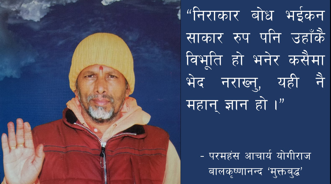 वि.सं. २०१० फागुन २३ मा जन्म लिनु भएको सद्गुरुदेव परमहंस आचार्य योगिराज बालकृष्णानन्द "मुक्तबुद्ध" ज्यू अतियोग सिद्ध गुरु हुनुहुन्छ। उहाँले वि.सं. २०३८ सालमा अतियोगद्वारा निर्विकल्प समाधि, अमोघ ब्रह्मज्ञान वोध गर्नुभएको हो । उहाँलाई वि.सं. २०४३ सालमा सम्पन्न धर्मसभाबाट विधिपूर्वक परमहंस आचार्य योगिराज सन्त शिरोमणि १०८ स्वामी बालकृष्णानन्द पदबाट विभूषित गरिएको हो । त्यस्तै वि.सं. २०४९ वैशाख २४ गते गोदावरी बौद्ध गुम्बामा बुद्ध धर्मका शिरोमणि झट्टेल रिन्पोछे (Chatral Sangye Dorje Rinpoche) ज्यूले “मुक्तबुद्ध" (स्वयं सिद्ध भएको बुद्ध) उपाधिबाट विभूषित गर्नुभएको हो ।